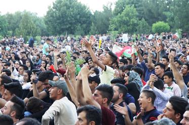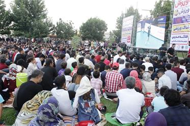 هزاران عاشق والیبال در ارومیه دیدار ایران و کانادا را از طریق تلویزیون های شهری دنبال کردند.