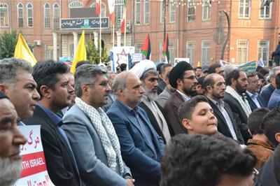 در حاشیه این تجمع، غلامحسین عماری، فرماندار شهرستان ارومیه در گفت و گو با ایسنا ضمن محکومیت اقدامات وحشیانه رژیم اسرائیل افزود: امروز مردم انقلابی ارومیه با حضور در این تجمع اعتراضی، انزجار خود را از رژیم صهیونیستی اعلام و از مردم مظلوم و بی دفاع فلسطین حمایت کردند.