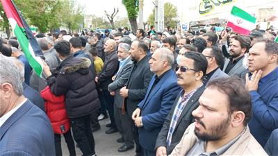 حضور غلامحسین عماری فرماندار شهرستان ارومیه با همراهی معاونین، بخشدار مرکزی و جمعی از همکاران مجموعه فرمانداری در راهپیمایی روز جهانی قدس