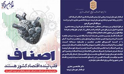 اینجانب با گرامیداشت یاد و خاطره شهیدان والامقام جامعه اصناف، فرارسیدن روز ملی اصناف را به تمامی بازاریان و کسبه عزیز و شریف شهرستان ارومیه تبریک عرض نموده و از تشریک مساعی و اقدامات ارزنده اصناف در پیشبرد امور مختلف شهرستان بویژه همکاری مناسب برای تنظیم بازار تشکر وقدردانی می نمایم