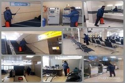 به منظور پیشگیری از شیوع ویروس کرونا کلیه سطوح ترمینالهای داخلی و خارجی فرودگاه ارومیه ضد عفونی شد.