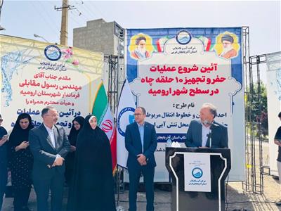 عملیات حفر و تجهیز 10 حلقه چاه در شهرستان ارومیه با هدف تقویت منابع آبی و توسعه زیرساختهای آبرسانی مشروب شهری، با حضور جهانگیری نماینده مردم ارومیه در مجلس شورای اسلامی، مقابلی فرماندار شهرستان ارومیه و مدیرعامل شرکت آب و فاضلاب آذربایجانغربی آغاز شد